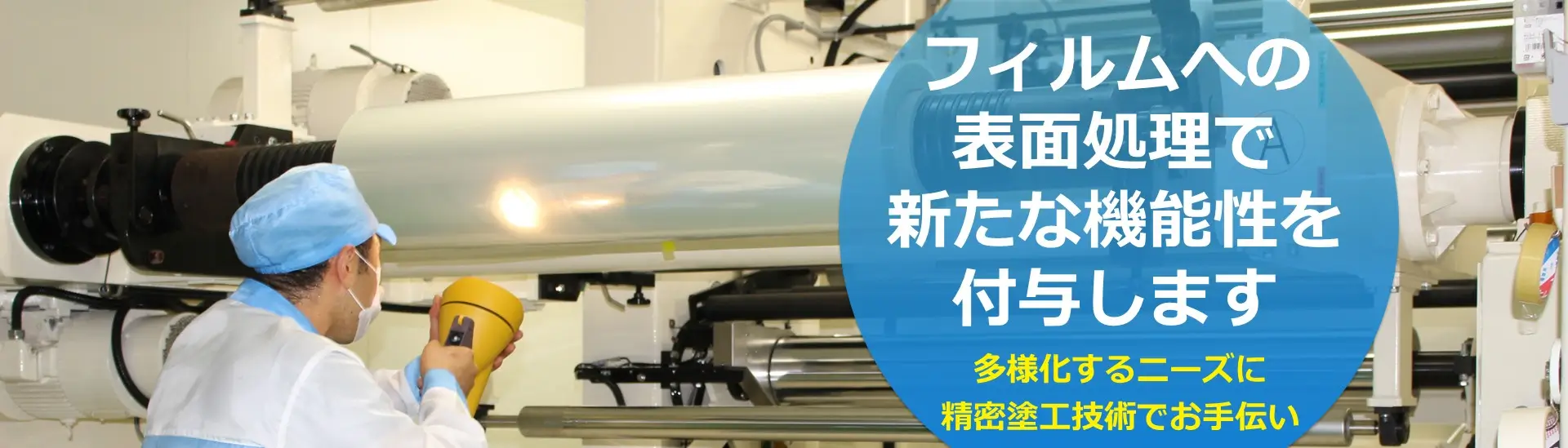 フィルム表面処理加工を受託で対応しており、コロナ処理・アニール処理・離型コートや易接着コートなどと、バリエーション豊富な加工技術でお客様独自の製品に機能性を付与します。