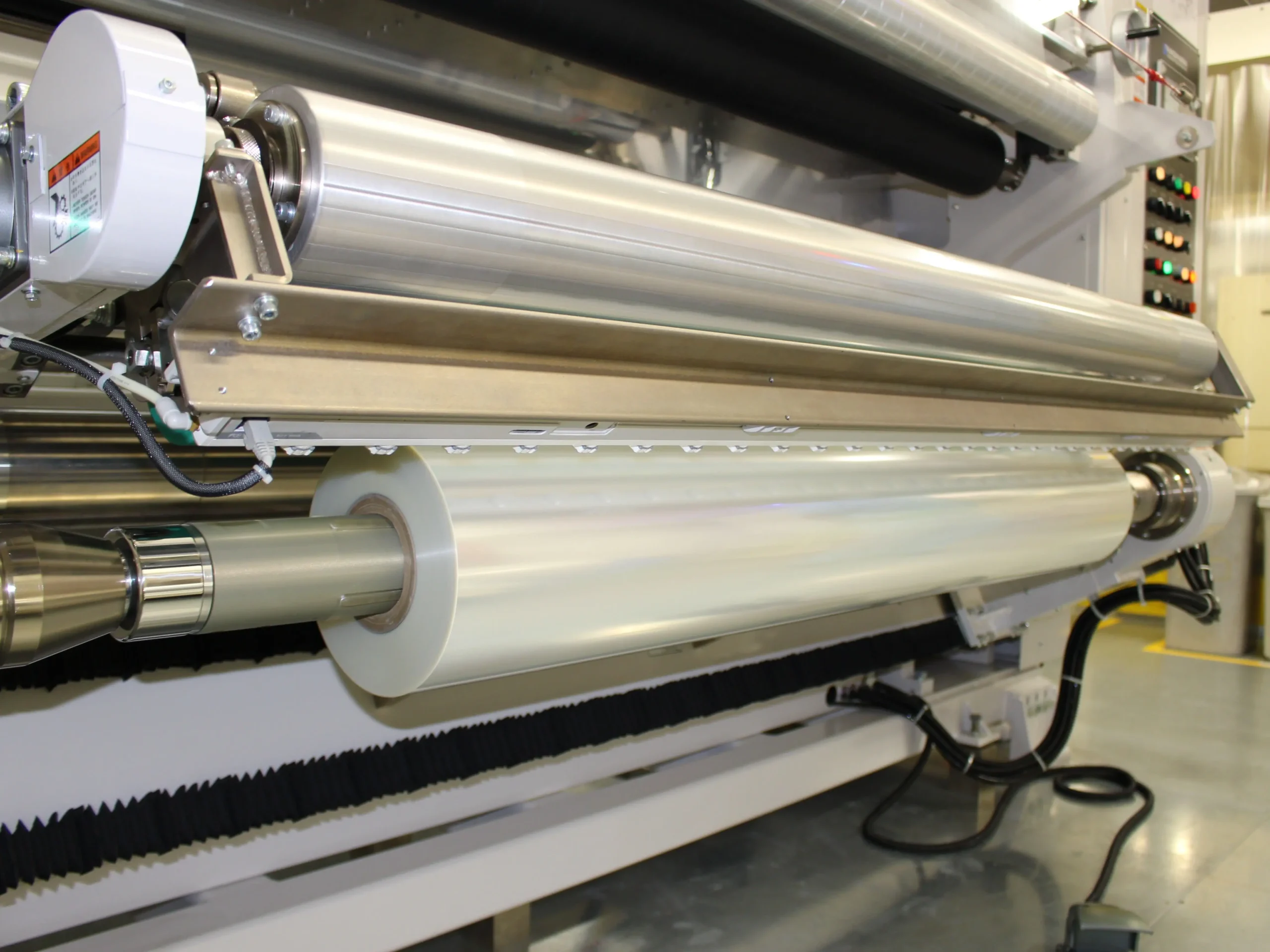 コロナ処理ラインにnano除電を併設し、異物付着を抑えたクリーンな表面品質を実現。