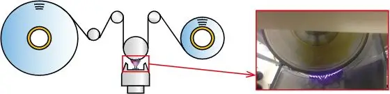 コロナ放電による表面改質は、フィルムの表面に親水性の基を生成します。 |