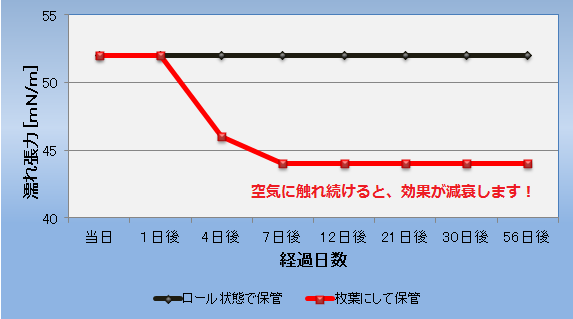 コロナ処理後、ヌレ性は時間と共に変化します。