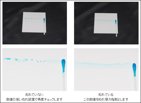 ぬれ張力の試験法は、JIS K6768 「プラスチック−フィルム及びシート−ぬれ張力試験方法」として規定されています。