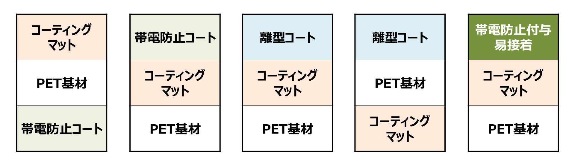 - 帯電防止性・易接着性・離型性などを追加することにより後工程への適合性
